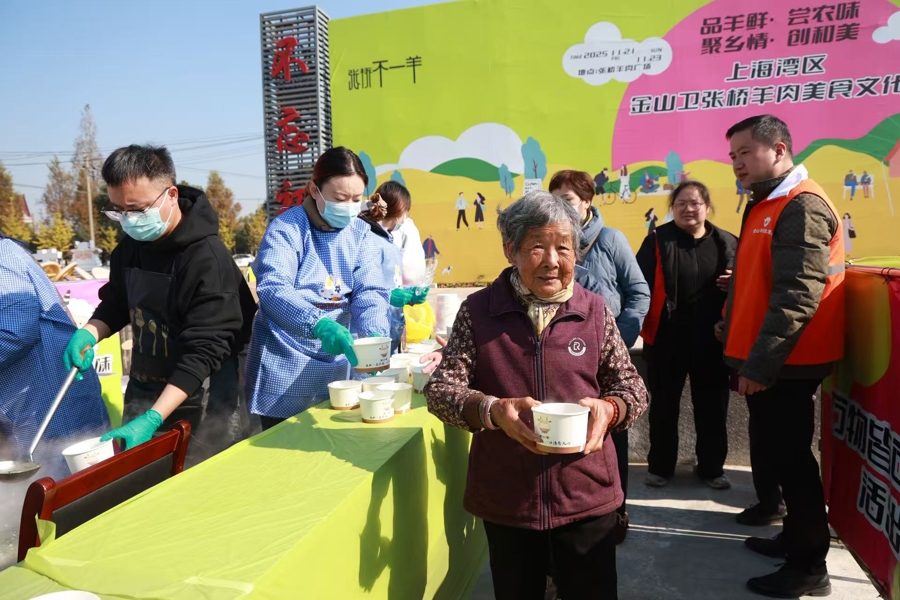 立冬已过,寒意渐浓。11月21日一早,在金山区金山卫镇张桥村,伴随着蒸腾的烟火气和热闹的表演,以“张桥羊肉”和“千人锅”为主设计元素的IP形象“不一羊”首次登台亮相,正式拉开了2025“上海湾区・金山卫张桥羊肉美食文化节”的帷幕。长桌宴,稻田集市,篝火晚会,大锅羊肉……各类丰富的活动轮番登场,让闻讯前来的市民游客直呼“过瘾”。