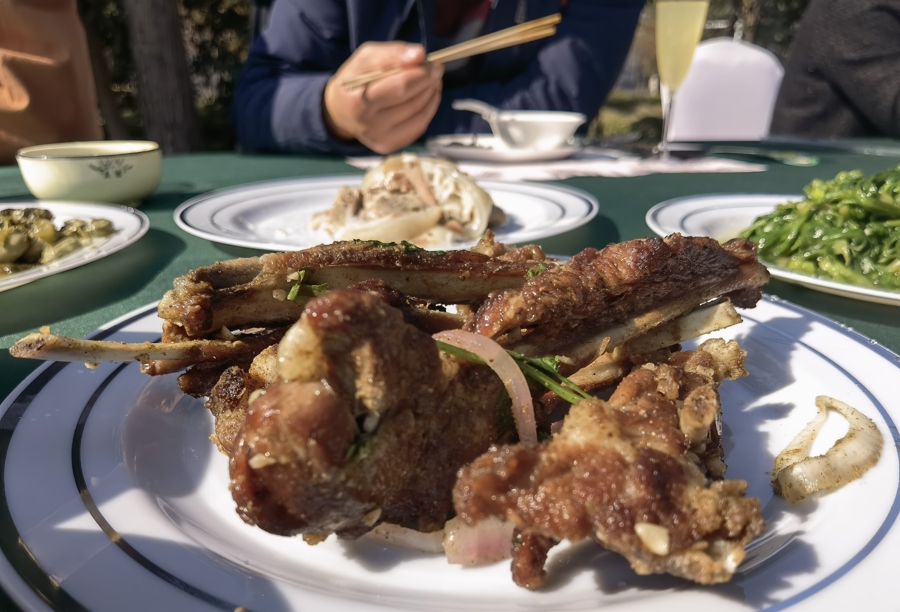 金色稻田旁,热闹非凡的长桌宴一字排开,以“张桥羊肉”为主食材的十余道经典菜品为前来品尝的食客带来丰富的味觉体验:热气羊肉冒着白白的蒸汽,咬一口爽滑弹嫩,香而不腻;羊杂汤色白滚烫,尝一匙味道鲜美,齿颊留香;红烧羊肉、烤羊排,烫一壶温润的老酒,来几口鲜美的羊肉,现场的饕客们大快朵颐,赞不绝口。