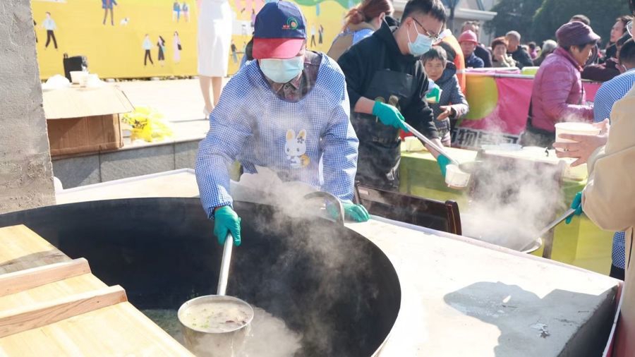 作为每年羊肉节的保留项目,直径约2米的羊汤锅再现了当年“千人锅”的盛况。相传,明嘉靖年间,胡宗宪以张桥羊肉,大宴戚家军。戚继光遂在演武考场支起七口“千人锅”,烹羊备酒,热闹非凡。张桥“天下一品羊肉”的美名也流传至今。